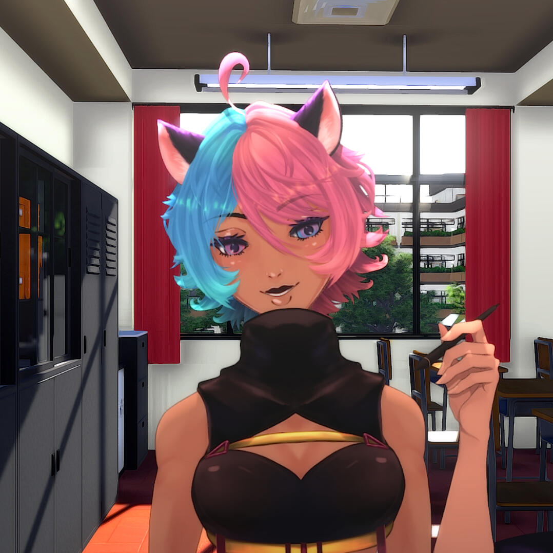 I am a cyberpunk catgirl fixer living in a neon futuristic city!