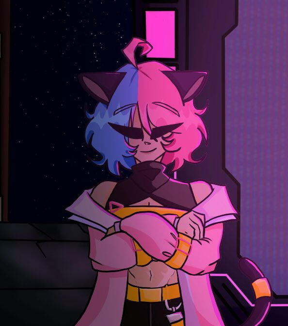 I am a cyberpunk catgirl fixer living in a neon futuristic city!